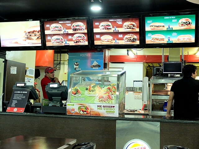 パラグアイの通貨グアラニーには両替していなかったのですが、ショッピング・センターで見かけたバーガー・キングのレジの脇には「グアラニーのほか、レアル、ペソ、ドルも使えます。」の表示が。