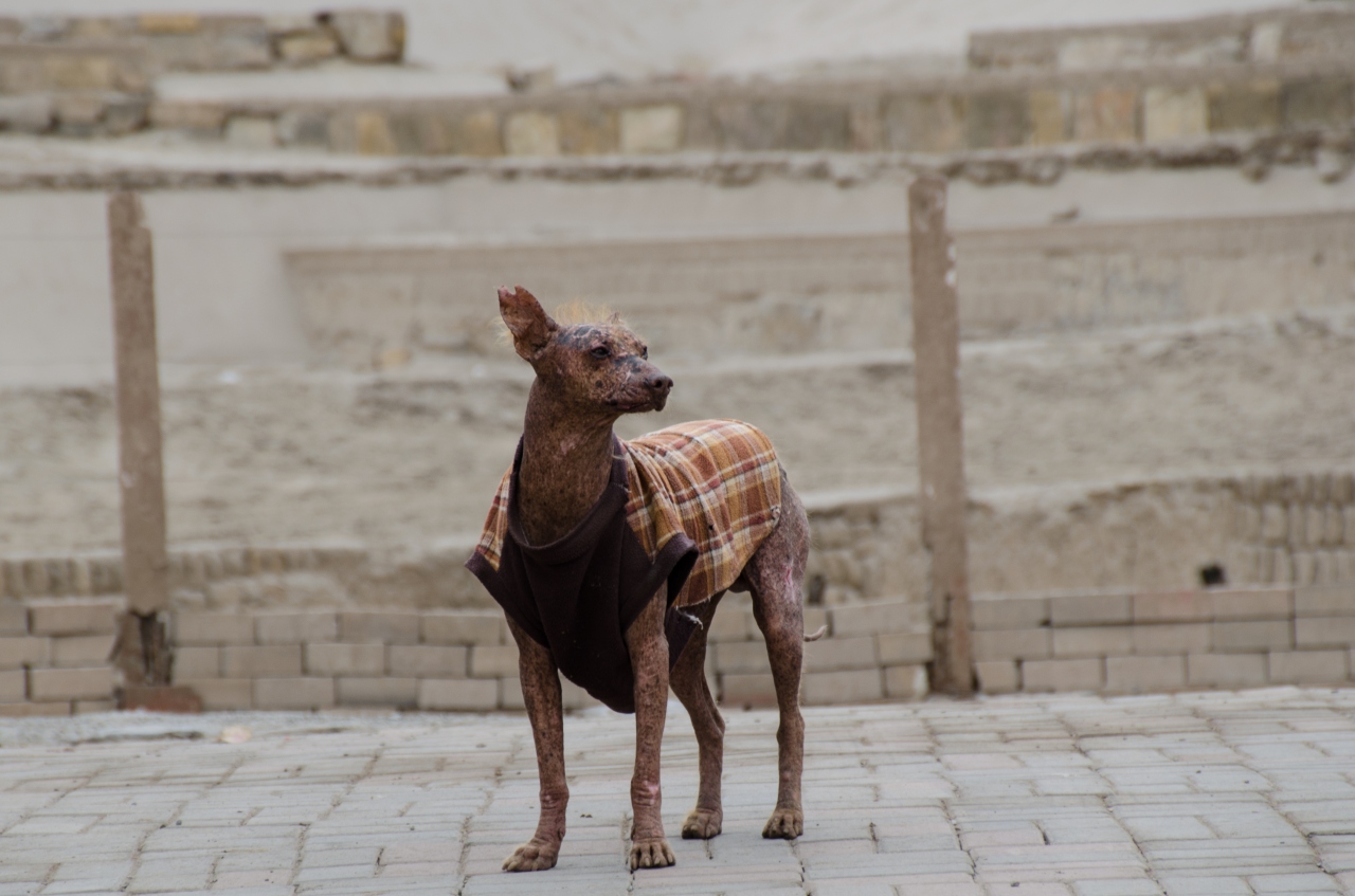 ペルービアン・インカ・オーキッド [Peruvian Inca Orchid] ご存じですか?ペルー原産の犬。 南米の固有種で強烈な日差しに強い犬種。 ペルービアン・ヘアレス・ドッグと同系種で 2犬種として分化した経歴をもっています。 かつては、古代ヴァンカ族の食用犬だったそうですが、 インカ帝国の支配下に入り、この犬種は貴族用のペットとして 飼育されるようになったそうです。 ひび割れた皮膚、ちぎれた耳、薄茶色の頭髪、凛凛しいお姿です。 リマのパチャカマック遺跡で飼われていました。 ヘアレスドックは寒さに弱いため、洋服を着ております。 同系種のペルービアン・ヘアレス・ドッグは オバマ大統領へ、ペルーから寄贈のお話もあった犬、 お嬢さんが「毛」にアレルギーがあったとかで ヘアレスならいいだろうと候補に上がったそうですよ。 中南米以外では見ることができない犬です。 ペルーへご旅行の際に、見つけることができたら とってもラッキーだと思います。
