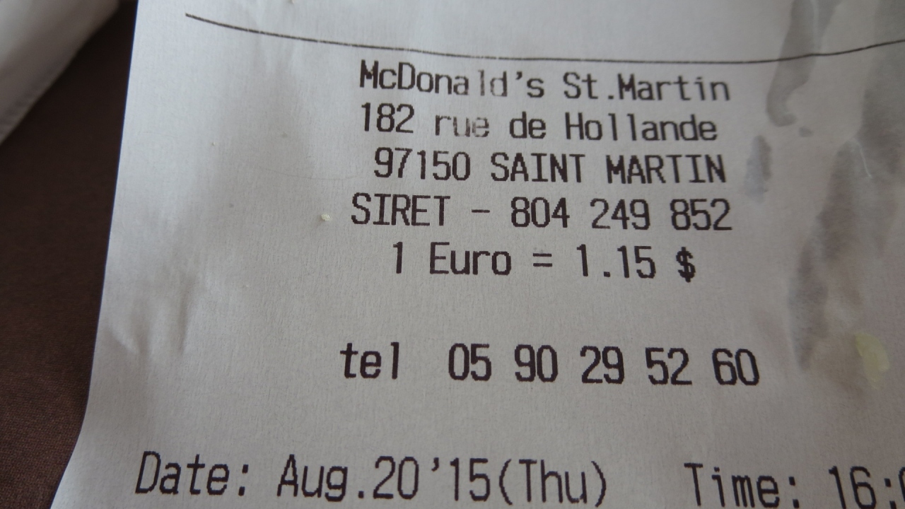 セントマーチン島北部はフランス領ですので、通常の価格表示はユーロになっていますが、基本的にドルとユーロが等価で利用できます。