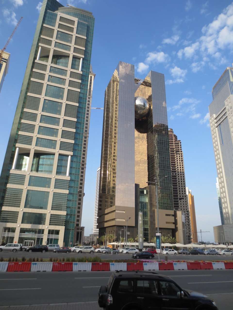 日差しの感じ方は人によりかなり異なると思いますが、少なくとも北国で生活している自分にとっては、一年で一番気温が低いとされる1月下旬のこの国でも、日差しはかなり強烈に感じ、気候的にも朝から半袖で十分でした。ドーハ市内は公のスペース(公園など)としての日差しを避ける場所がとても少ないように感じましたので、観光で街歩きをされる際には、冬でも油断なく暑さ対策を心がけるようにして下さい。(私の体感では、日中時間帯は1月下旬でも、30度近くあるように感じました。)