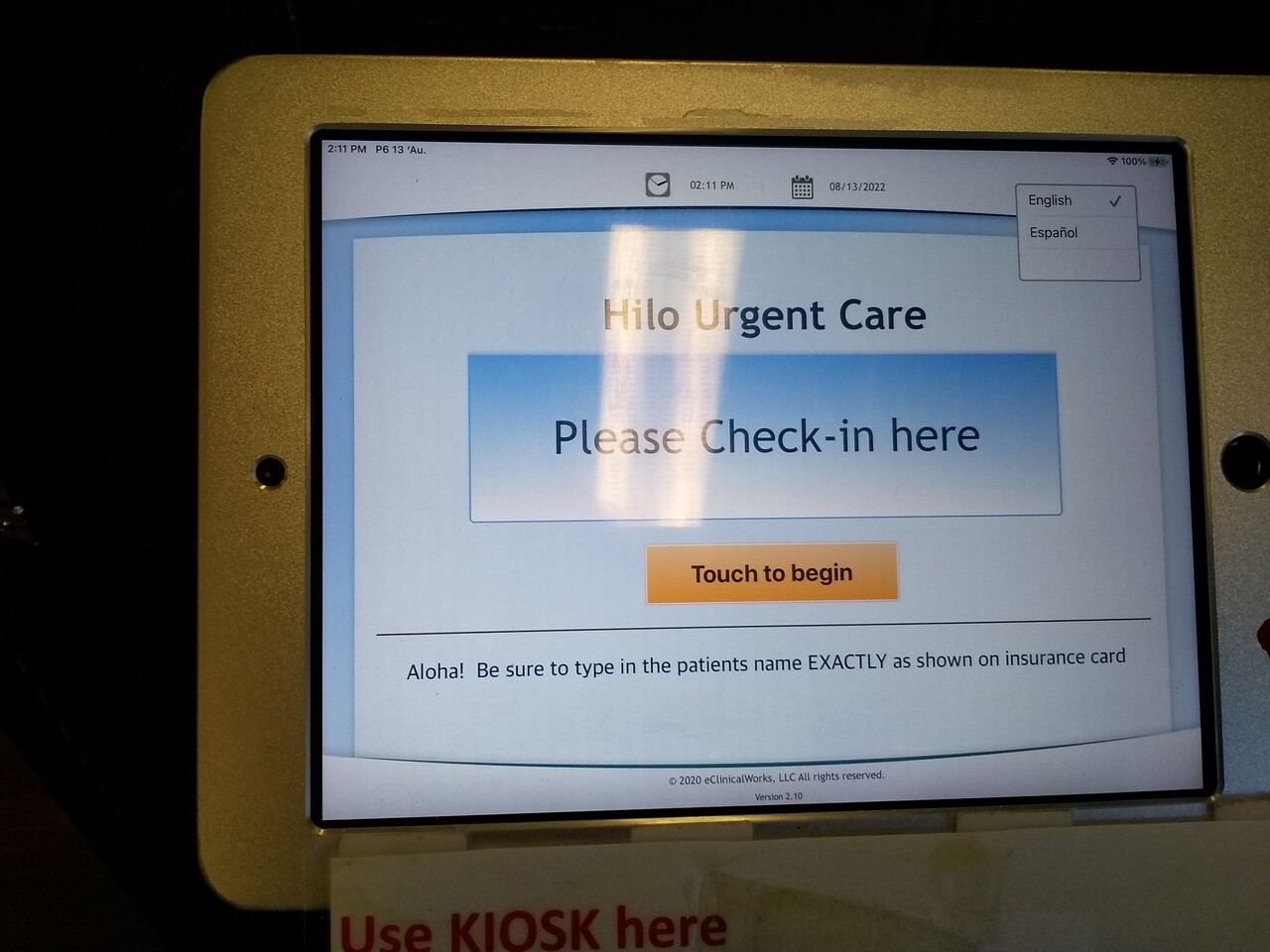 事前にクィーンズマーケットプレイスに昨日訪れ行ってみましたが14時迄、特設のテントでやっていると思いましたが13:40に訪れた時はテント小屋も撤去され聞く事も出来ませんでした。本日、土曜日もやっているので予約したヒロのワイアケアケアセンターの特設テントのNomi Healthに行きスタッフに結果はいつ来るかをお聞きしたら3~5日間かかるとの事でこの時点で諦めたところ丁度、ヒロに在住の日本人の方が子供さんの検査対応の事を聞きに来られていて直ぐ近くにあるUrgent Care Centerに行けば予約なしで約15分で検査結果と証明書が取得できますよと教えて頂き5分くらいの場所にある同センターに行き受付で事前に用意していた英語表記の厚生労働省・検疫所の検査証明書の要件を見せると拡散増幅検査ですよとリストの中から指さして言われ検査を受けることにしました。