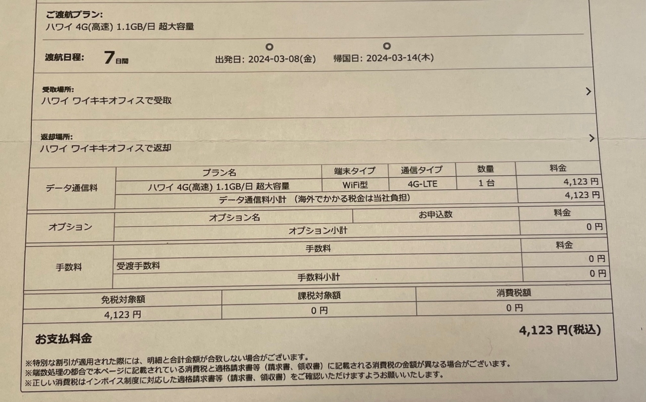 いち日だけ1ギガ使った日があったので、契約した「ハワイ 4G(高速) 1.1GB/日 超大容量」というプランでちょうど良かったです。