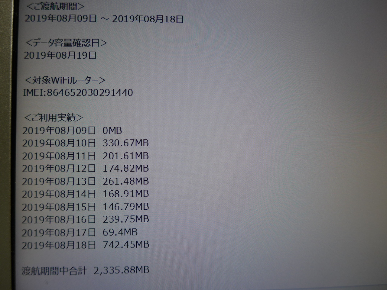 結果的には安心できるのですが外に出ている以外は全てコンドミニアムのWi-Fiがスピードも圧倒的に早く利用出来るので写真添付の様にレンタルWi-Fiを使う事はレンタカーで外に出た時だけでした。