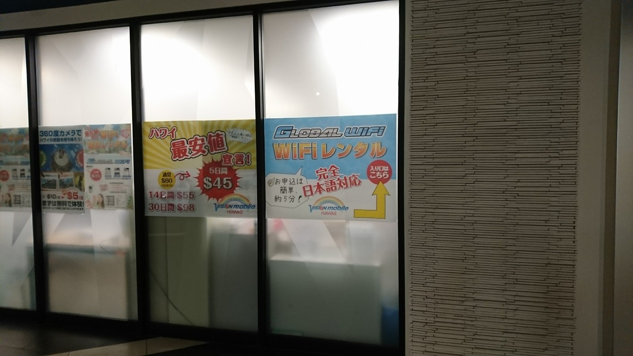 今回は、事前にネットで予約してハワイ支店で借りて見ましたがロイヤルハワイアンセンターのお向かいのショッピングセンターの2階にあったので判りやすくて簡単にレンタルできました。もし、不具合があったら直ぐに相談できる安心感もありました、返却も事務所の他ホノルル空港の返却ボックスでも出来るのが有りがたいですね。
