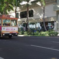 アラモアナセンターへの貴重な足ワイキキトロリーのピンクライン。