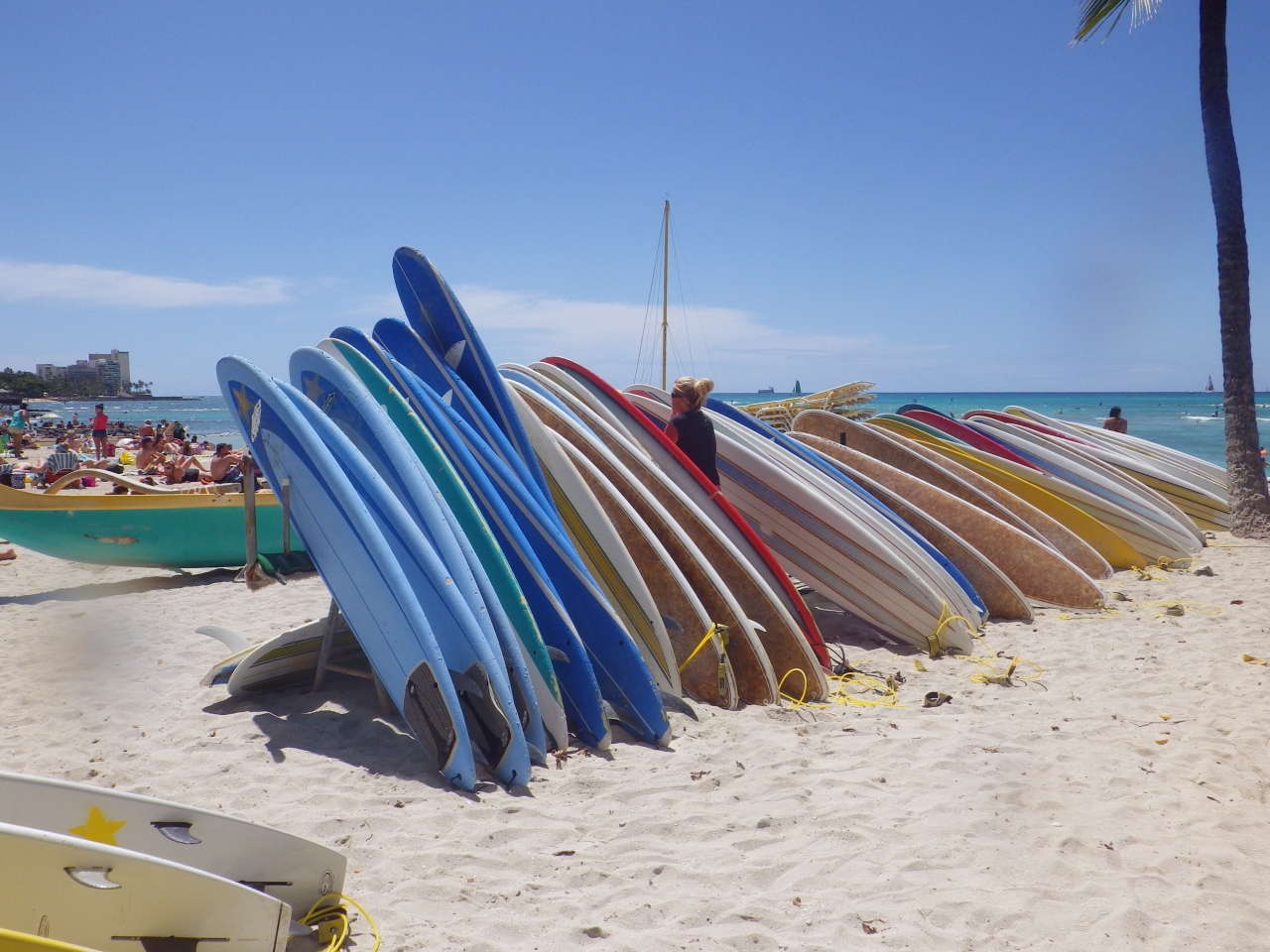 ワイキキの砂浜でビーチボーイズが開いているレンタルサーフボードショップでもクレジットカードが使えるのです。
