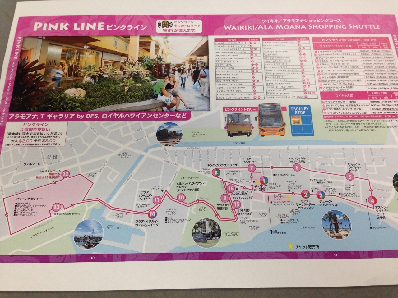 ピンクラインはワイキキビーチの主要なホテルと、ギャレリア、アラモアナショッピングセンターを巡廻していますので、とても便利です。 -