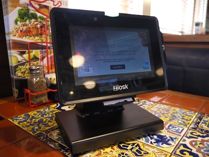 レストラン「チリズ」での支払いの時、テーブルの上に置いて有るタブレットに明細とチップの金額を選びカードを通すとサイン欄が出て来る、そこでペンが無いので店員に聞くとフィンガーとの返事そう指でサインすんです。