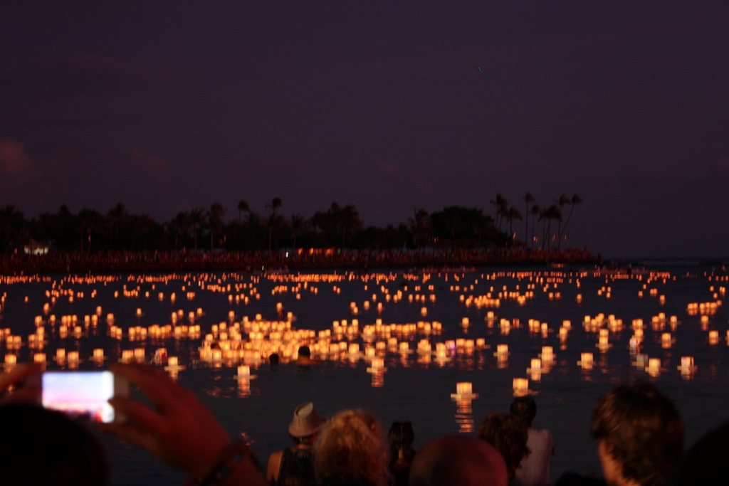 毎年5月27日のメモリアルデー(戦没将兵追悼記念日)にアラモアナビーチパークで灯篭流しが開催されます。故人へ向けた言葉を提灯に書き、夕刻の海に流します。誰でも参加でき、灯篭は無料で配布されますが受け渡しテントは長打の列なので早めに行かれることをおすすめします。