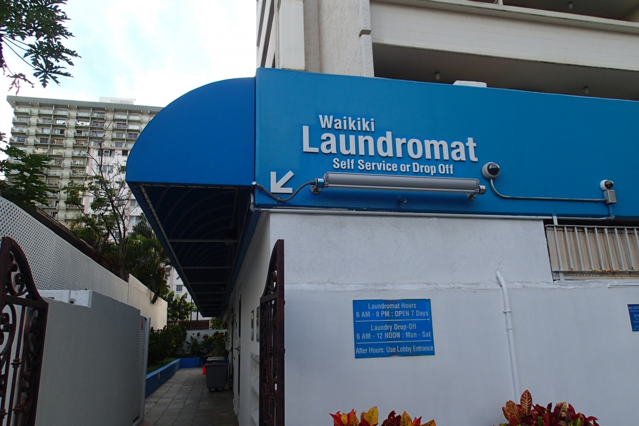 ワイキキの街中を歩いていると、ホテルやコンドミニアムの1階や近所にところどころで見かけます。(青い看板というか、壁のペイントが目印の「laundromat」は見つけやすい)