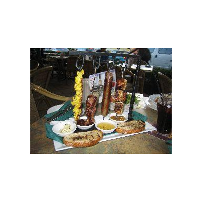 Apres Beach Bar & Grill(アプレー・ビーチバー&グリル)に行ってきました。シティプレイスからまっすぐケアンズセントラル方面に歩いて行って、シェリダン通りとシールズ通りの交差点角手前です。レッド オーカー グリル(RED OCHRE GRILL)の並びです。店の前の大きなBBの人形が目印です(笑)
