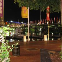 タウンホール駅周辺は夜も人通りが多いです。 -