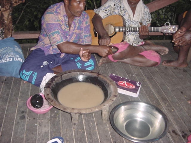 南太平洋の楽園とも呼ばれるフィージーには、”カバ”という飲み物があります。 ヤンゴーナという胡椒科の木の枝を細かく砕いて粉末状にしたものを布袋に包み、容器の水の中に入れてもみほぐすのです。 透明だった水は泥水のような褐色になり、それを汲んで廻し飲みするのがネイティブフィジアンの習慣なのです。 泥水のようなカバを飲めないと彼らの仲間に入れてもらえません。お酒ではなくアルコール分はありませんが、興奮作用があるようです。