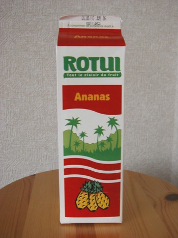 ボラボラ島の「ボラボラ・ラグーン・リゾート&スパ」のウェルカムドリンクは「ココナッツジュース」。モーレア島の「パールビーチリゾート&スパ」では、パイナップルジュースでした。子ども達と「日本にはない味だね!美味しい~!」と感激。どこかで手に入らないものかと思っていたところ、帰国時の空港内のお店に売っていたので、重いけど?買って帰りました。モーレア島には、フルーツジュース工場やパイナップル畑があるから美味しいんでしょうね!