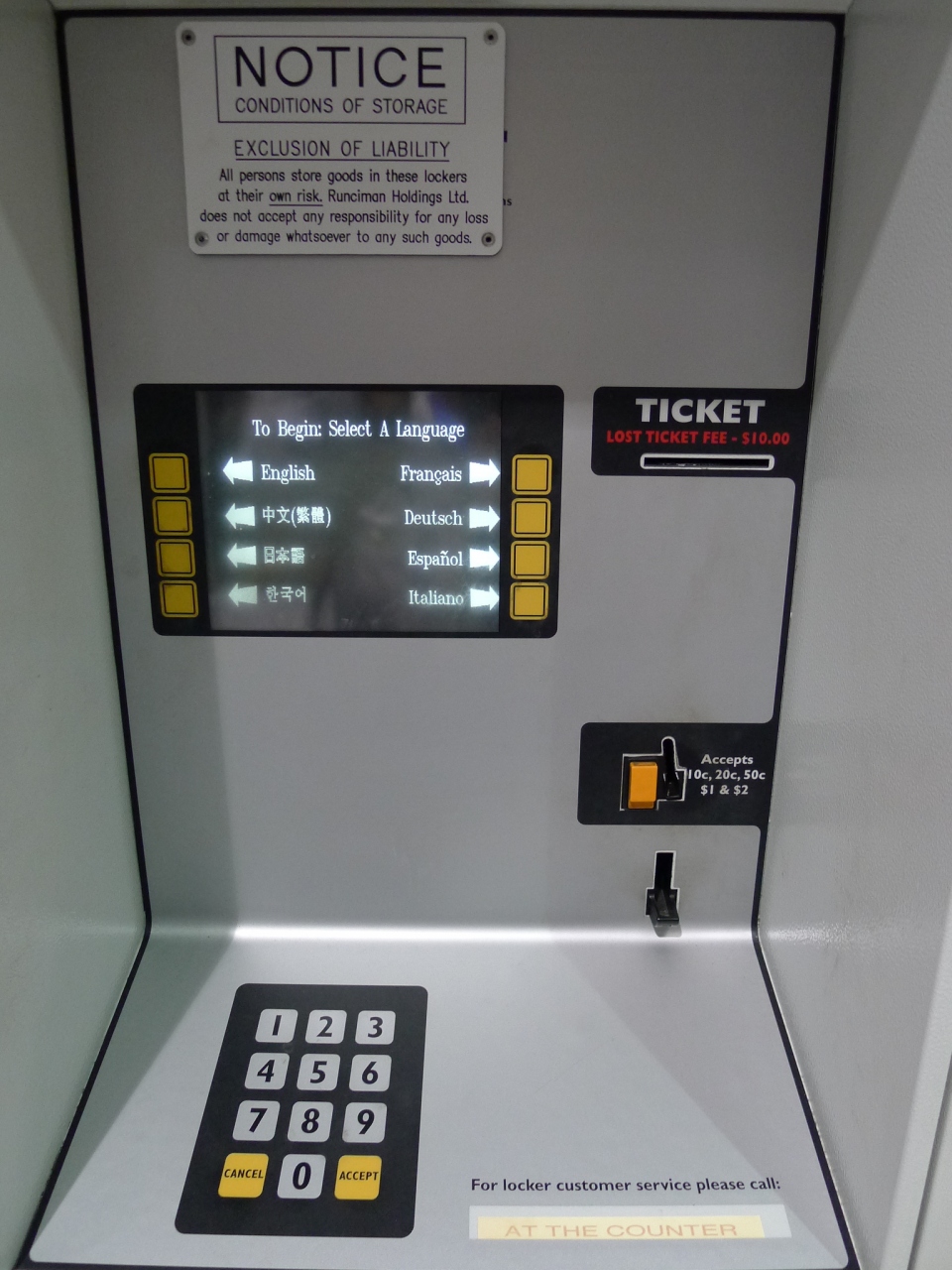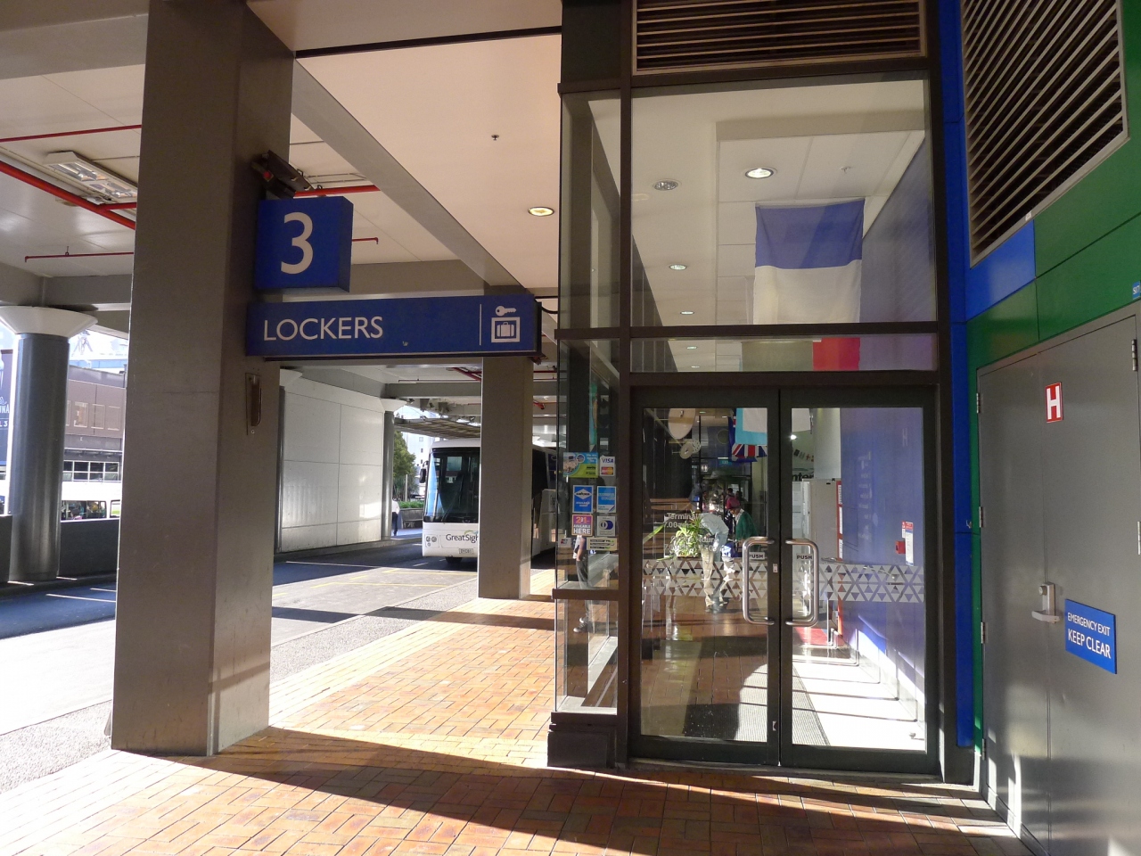 オークランドの中心地、スカイ・シティ1階の長距離バス発着所の横にコインロッカーがあります。