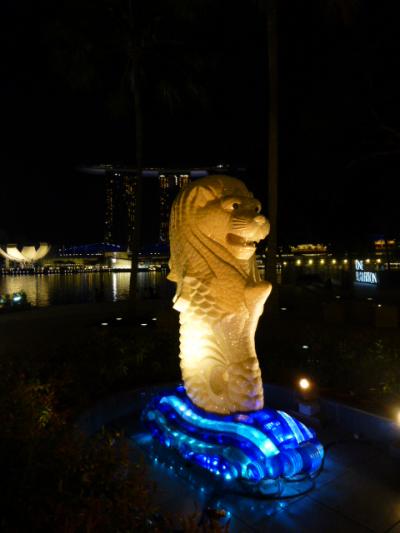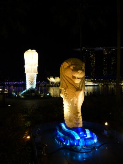 夜のマーライオンパーク後ろからのマーライオンこのときはまだ水を吐いてい...
