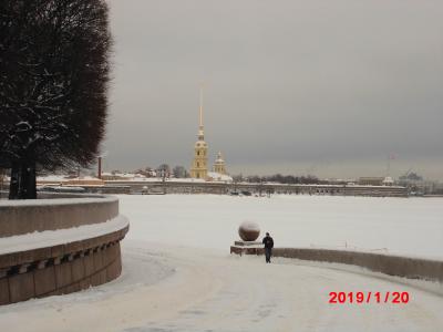 凍結したネヴァ川とペトロパヴロフスク要塞と大聖堂 この日のTVでネヴ...