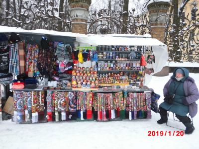 教会出口の広場のお土産屋さん カラフルで綺麗!! この寒さの中で何時...