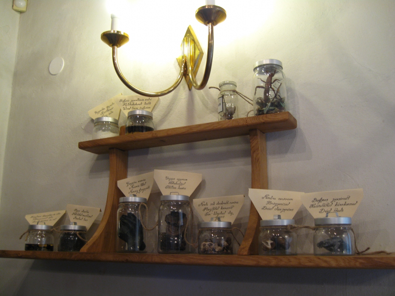 広場の一角に今も営業してる薬局があり、ヨーロッパでもっとも古いものの一つといわれてる市議会薬局があります。二階の薬局の奥のほうに恋の病に効く薬の原料の展示があり、牛の糞、かえるの干物等々今では考えられないような代物を調合していたようで………。恋の病を患った身分の高い人も低い人も、老若男女が神妙な顔をして飲んでたのだと想像するとなんとも………。うぅんー、ひょっとして効いたかも。 ハァ ハァ ハァ!! ……真剣に悩んでた人を笑ってはいけないですね。