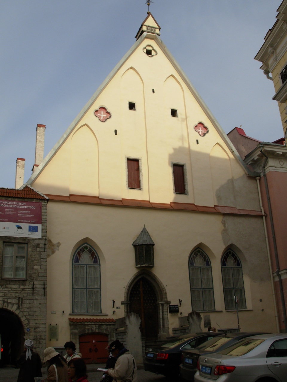 13世紀半ばにハンザ同盟に加盟しロシアとの中継点として栄え、現在の旧市街はこの頃の富に負うところ大といわれてる。そして時を同じくして同じ職業の人たちの集まりのギルドが栄え、その中で最高位が大ギルドで、その頃の建物が大ギルド会館として残っている。注目すべきは外壁の正面には大ギルドの紋章であった赤字に白の十字で、これはタリンの小紋章と同じで、いかにその時代を支えていたかが読み取れます。