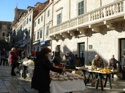 聖ヴラホ教会の脇を抜けてグンドゥリチェフ広場では朝市を見学。果物の砂糖菓子を試食