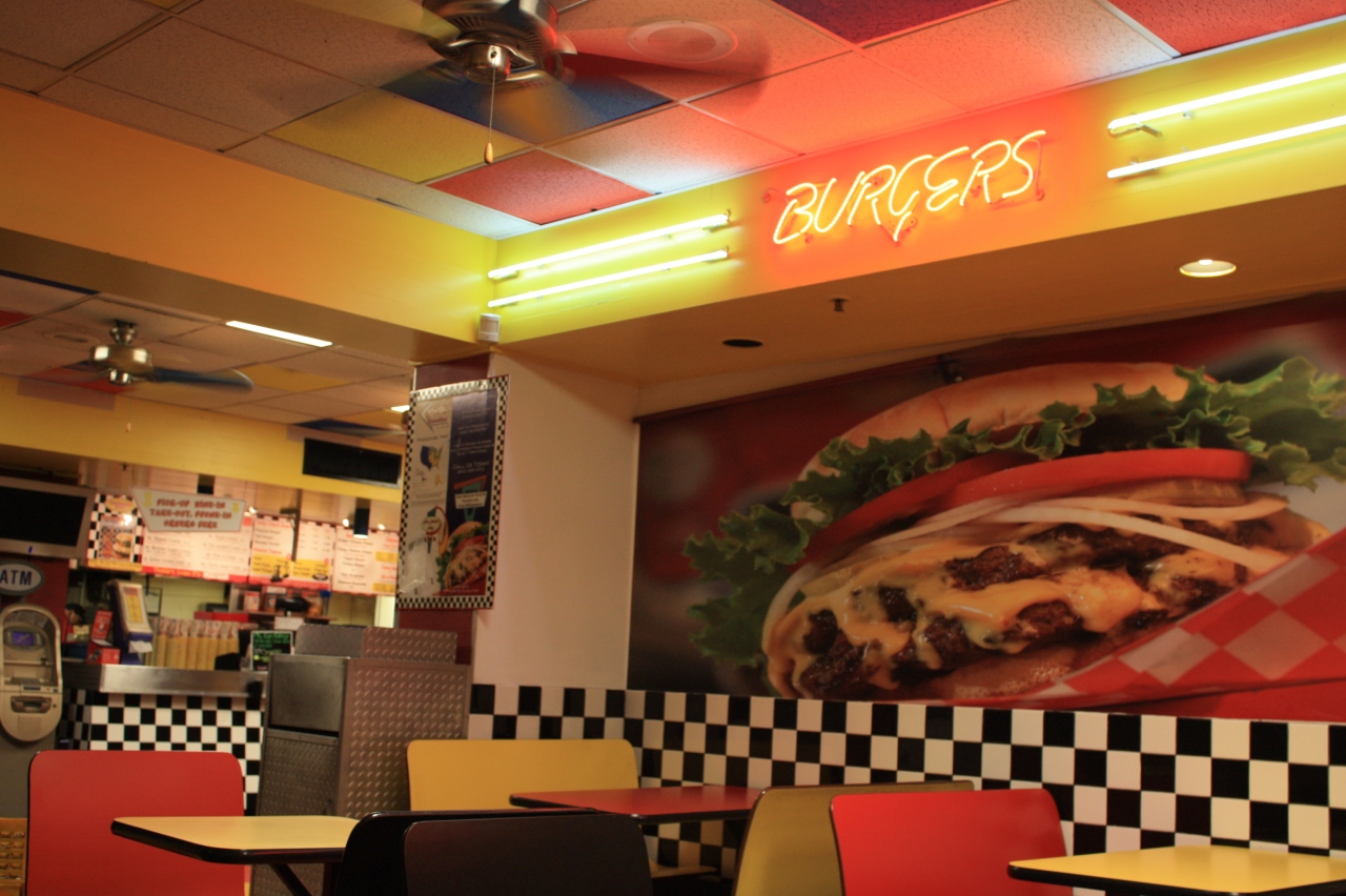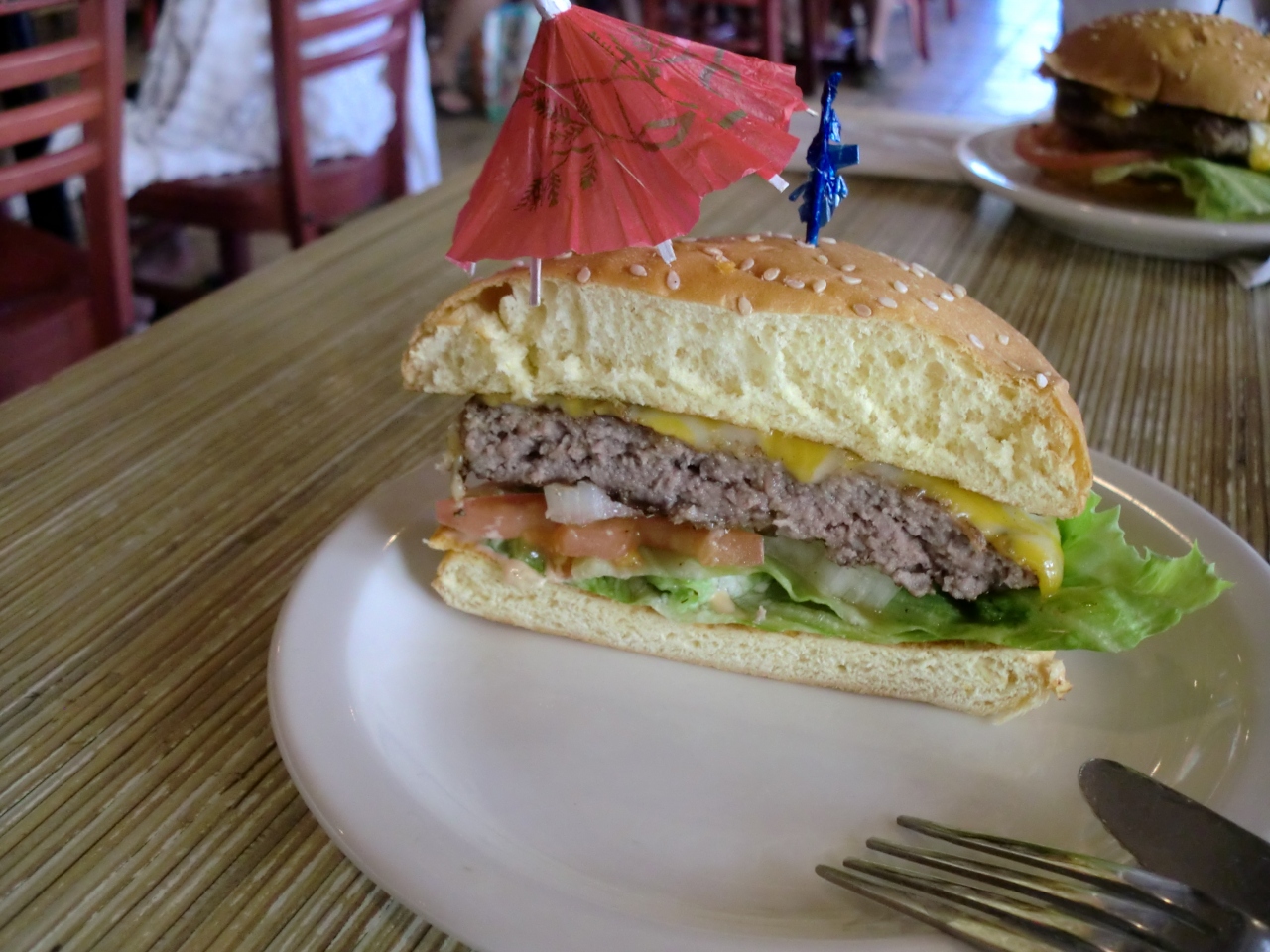二人でチーズバーガーをシェア。で十分な量です。お味は、いたって普通。わざわざ食べにいくほどではないかと。- 旅行時期