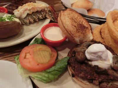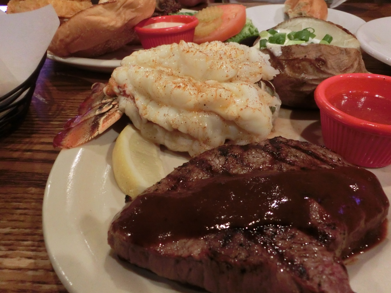 ステーキ&ロブスターのセット、グラスワイン付き$49.99。