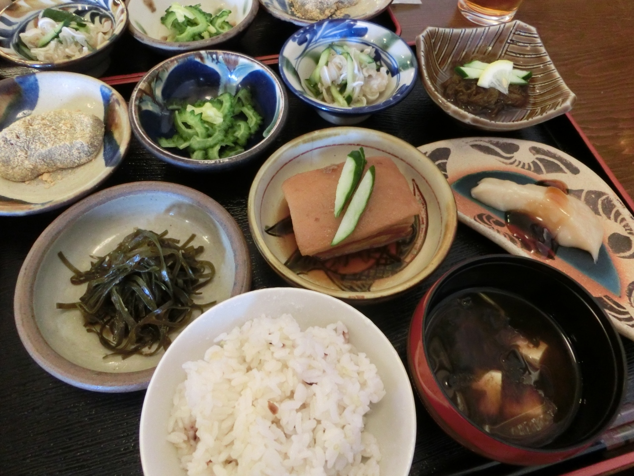 ラフテー、みみがー、もずくなど、代表的なものが少しずつ。どれも美味しかったです!食後のコーヒーもついてます。 1400円はちょっと高い気が…。バイキングの方が安く、揚げたての天ぷらが出てきたりとそっちの方がよかったかも。- 旅行時期