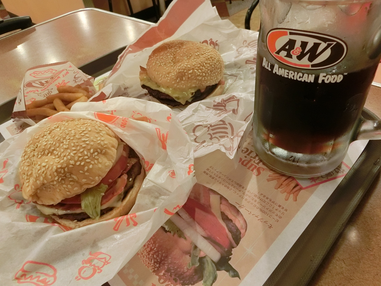 A&Wといえば!の定番モッツアバーガーとルートビアをオーダー。