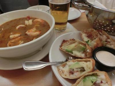 ビーチンシュリンプパスタ入りとアボカドシュリンプロール。