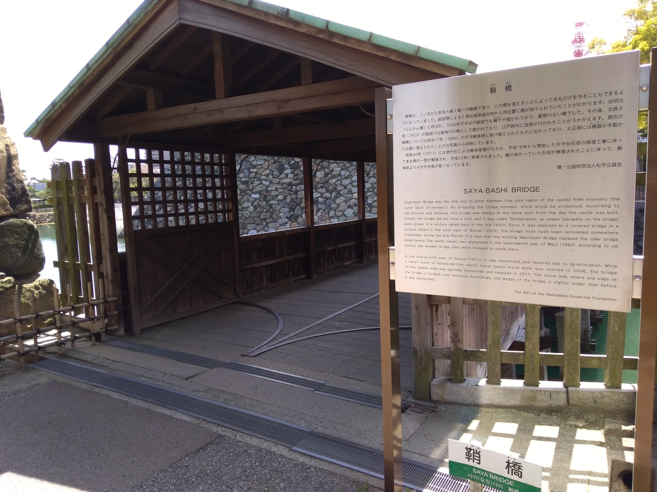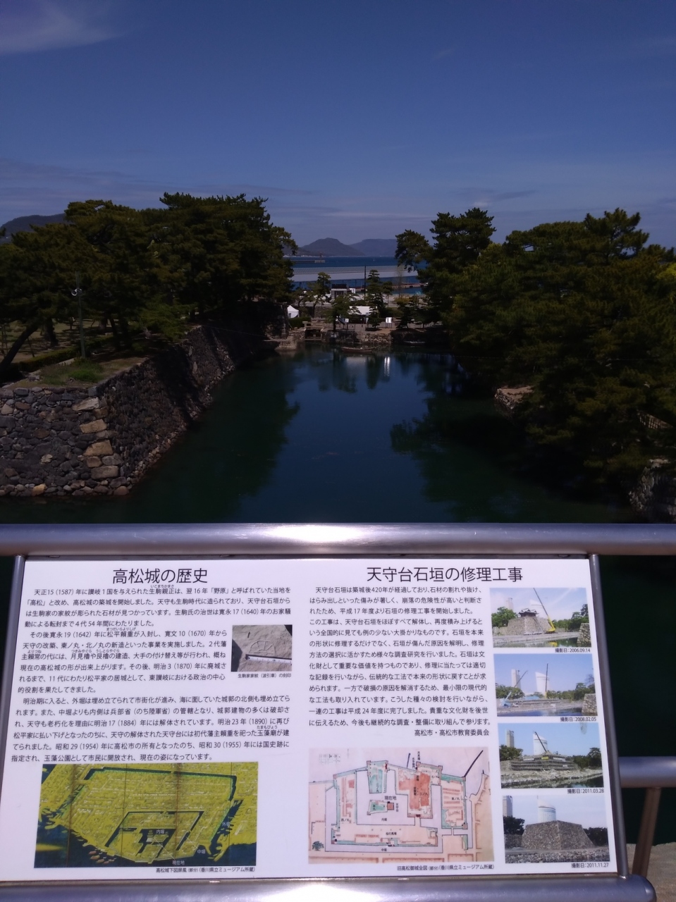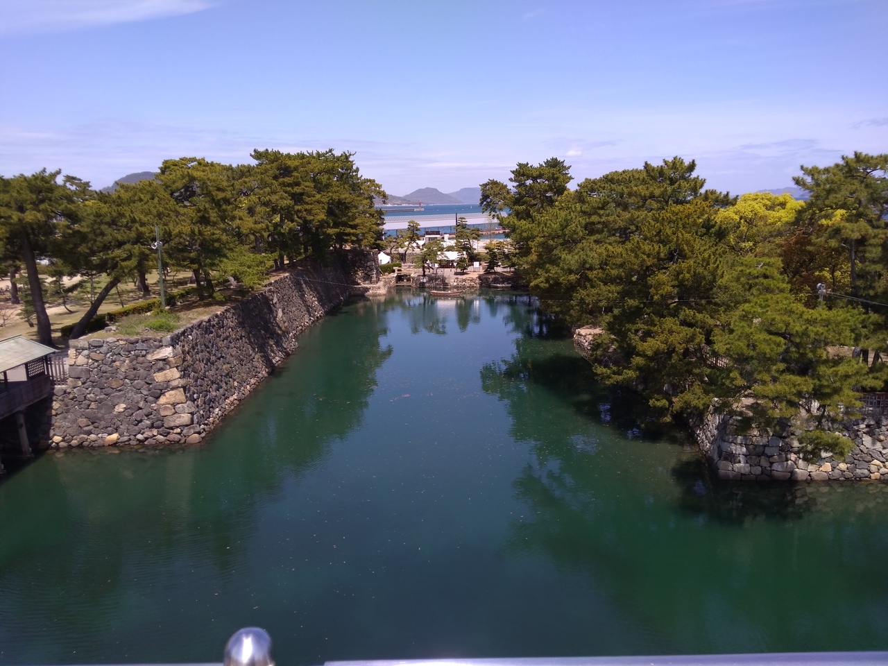 玉藻公園内にあり、高松市内の栄えたところにあるのでビルを背景に昔のお城の風景があるのが不思議な感じでした。お堀には魚がいて鯛の餌やりができて、そのお堀の水と橋の風景はとても美しかったです。行ってよかった場所です。