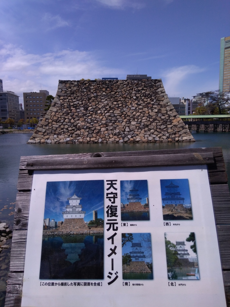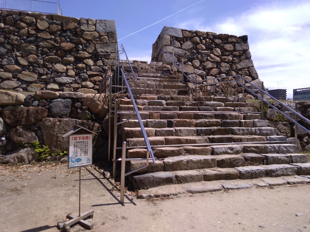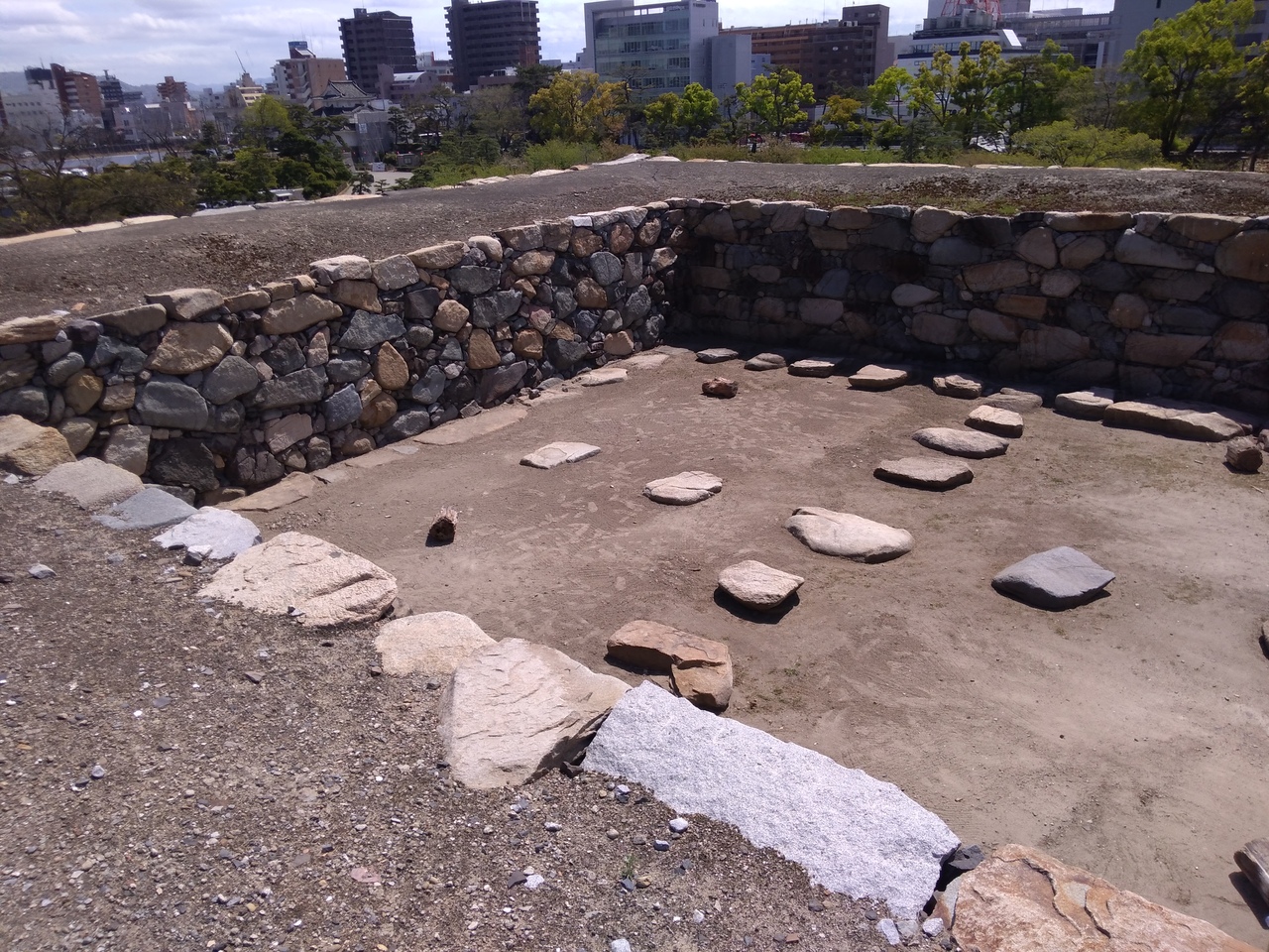 階段は急ですがそれほど多くないので年齢問わず登れるかと思います。登った上は何も無いですが、イタリアの遺跡のような雰囲気があって気に入りました。そして思ったより狭かったです。景色はとてもよくて遠くまで見渡せました。今後復元されたら登ることも出来なくなると思うので、玉藻公園に来たら登ってみるのがオススメです。