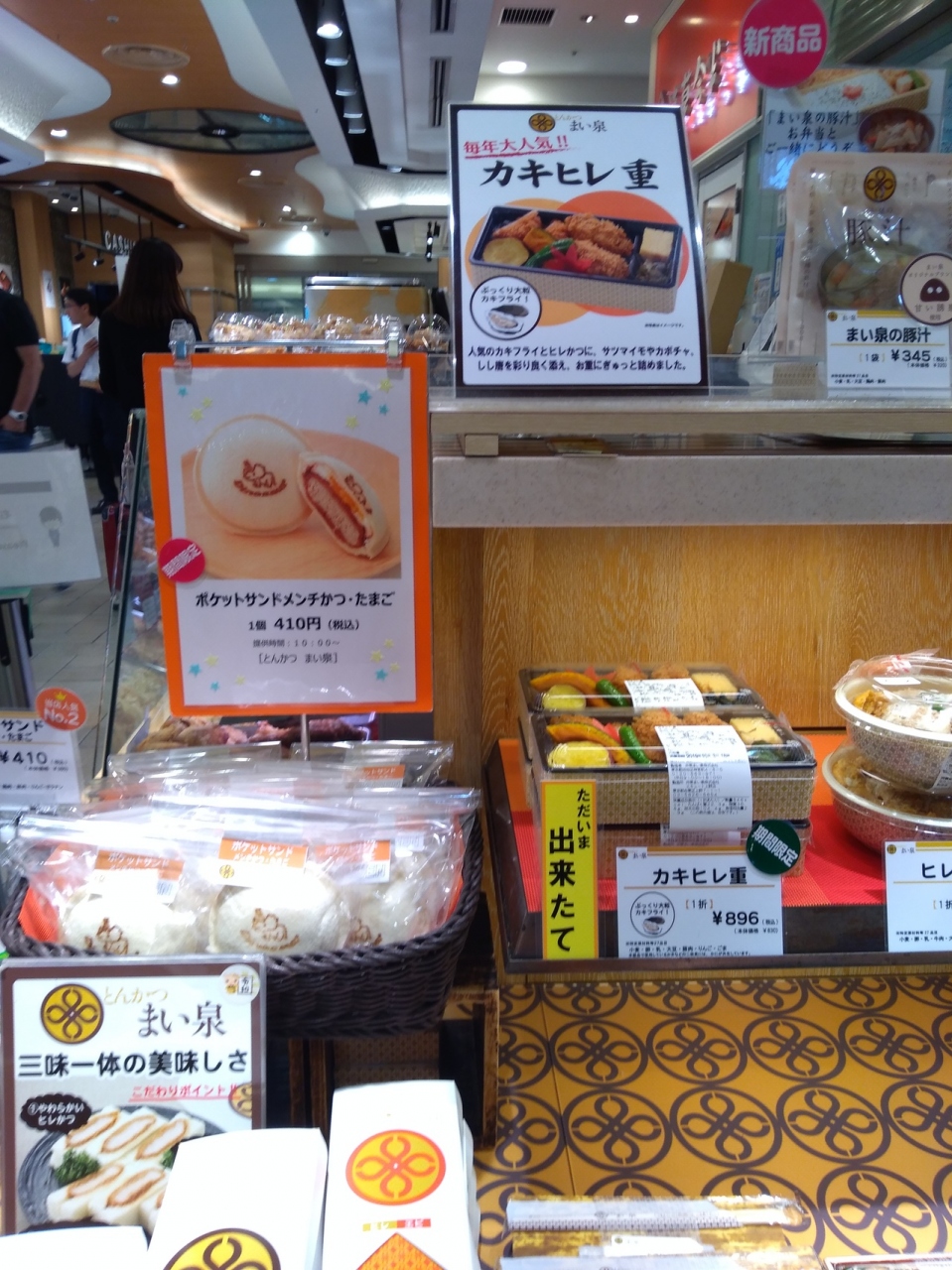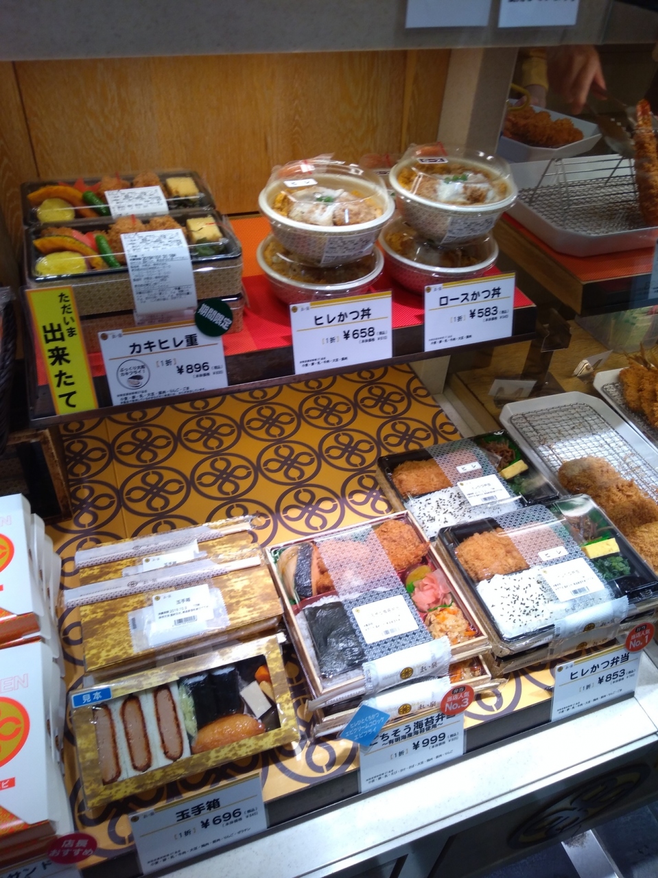 上野のエキュート内通路から見える場所にあります。コロッケやカツはもちろんですが、お弁当やカツサンドもあるので小腹が空いた時に助かります。おすすめはエビカツセットになったカツサンドセットです。おしぼり付きで買ってすぐ外でも食べられました!