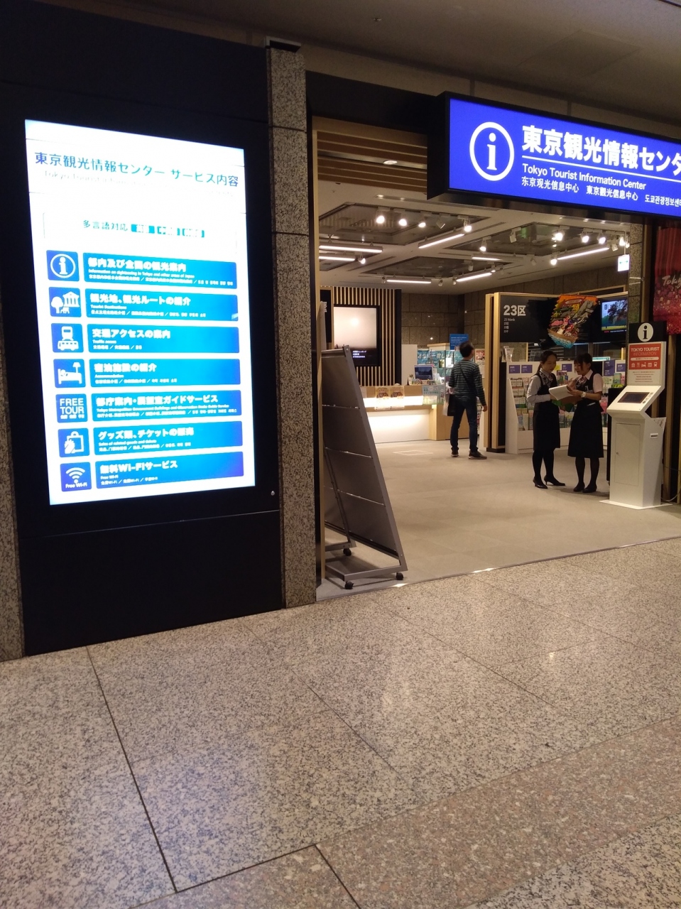 都庁内部の端の方にありました。都庁のある新宿周辺だけではなく東京都内全般の観光情報が得られます。東京に来たらまず初めに、ここの観光センターへ行き情報収集をしつつ、都庁展望台で東京を一望するのも良いかもしれません。外国人観光客も多かったです。