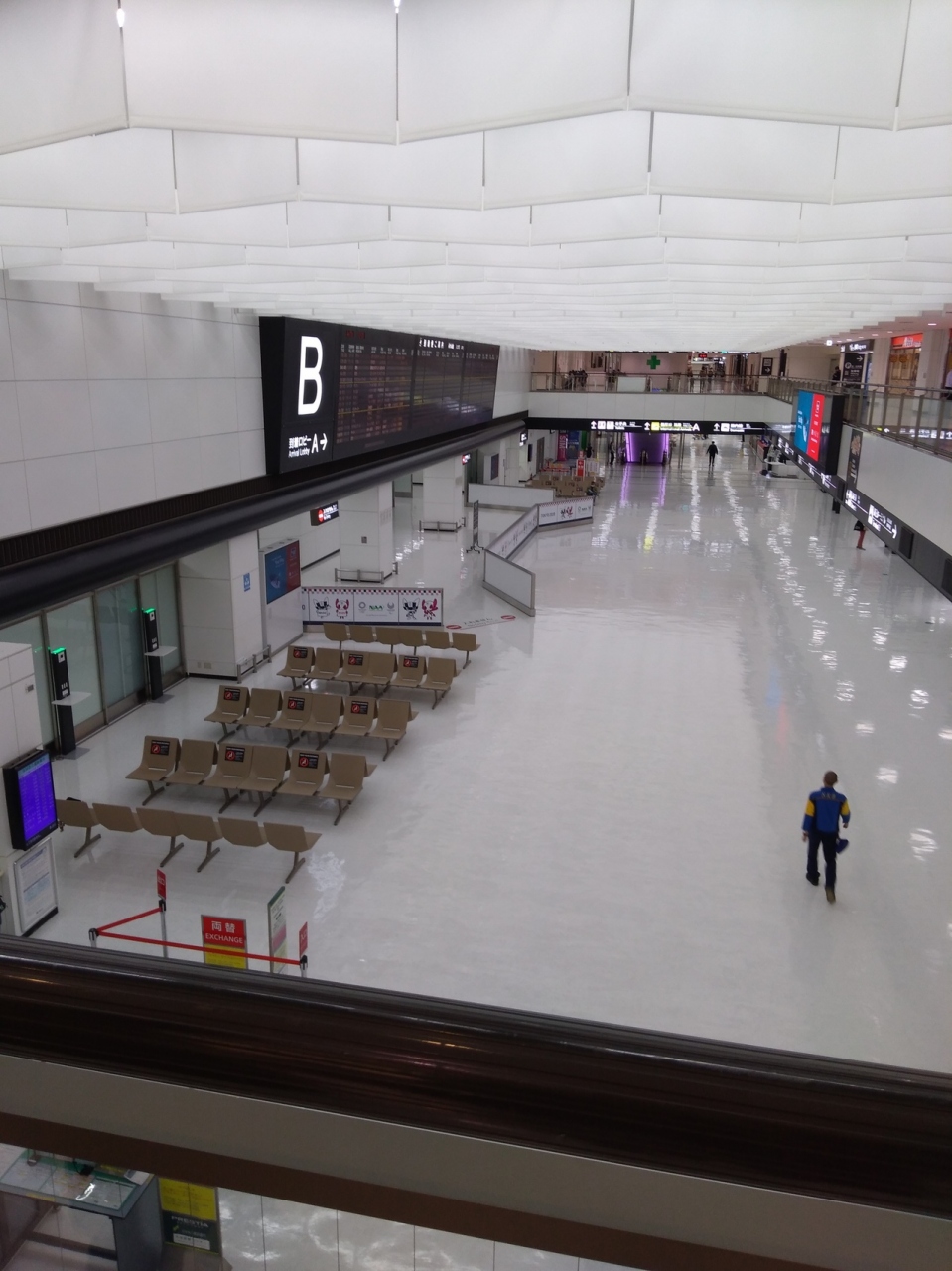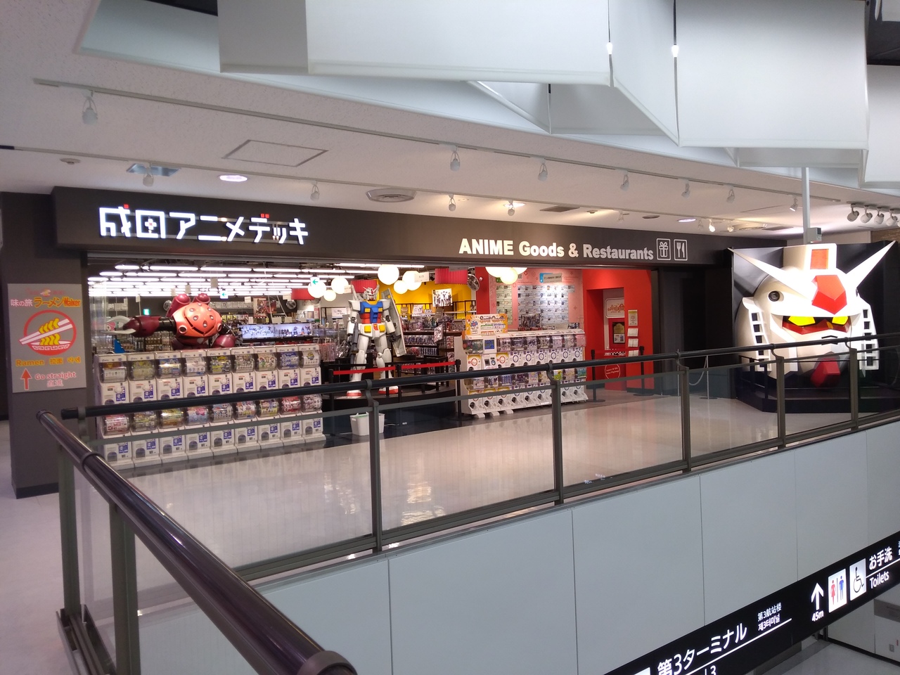 コロナウイルスの影響で第2ターミナルは全く人がいない状態、お店も半分くらい閉まっていました。アニメ推しのようでガンダムが目立つお店とスターバックスには結構人気が多かったけれど、お昼時でも吉野家もガラガラで寂しい感じでした。