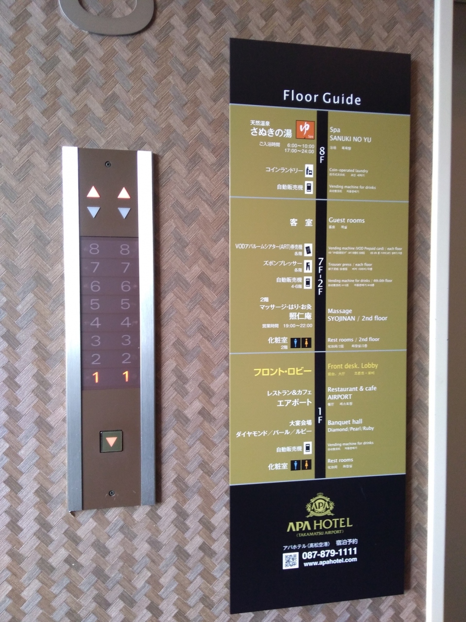 空港から一番近いということでアパホテル高松空港を選びました。空港について迎えの車をお願いするつもりでしたが、あまりにも周りが山だらけでレンタカーを借りた方が懸命と判断し急遽レンタカーで行きましたが駐車場は無料でたくさん空いていたので良かったです。8階には温泉もあり満足でした。レストランは閉店してしまっていて外に食べに行く必要があります。朝ごはんはパンとコーヒーはセルフで置いてあって助かりました。