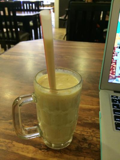 大ジョッキグラスに入って出てきたミックスラッシーは、果物のゴロゴロ感が残っていて、甘めのラッシーでしたが私はインドの中ではここのラッシーが1番好きです!