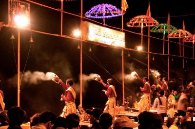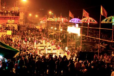 観光客と一体なんて事はなく、祈りを捧げる僧侶達をライトアップし場の照明や音響などもきちんとしていて、いかにも「見せるためのプジャー」だったような気がします。