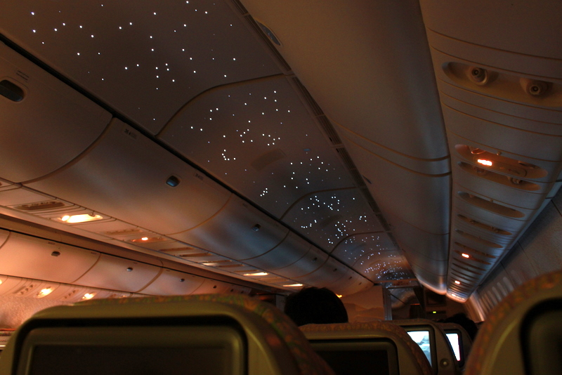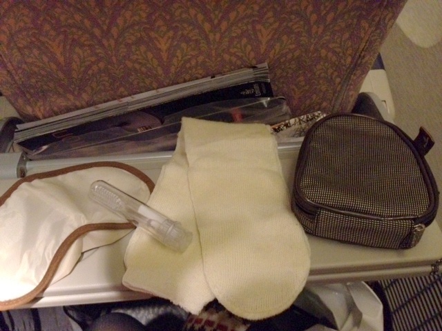 また、最初にアイマスクと靴下、歯ブラシセットがエミレーツのポーチに入れられて配られたり、ありとあらゆる物の細部にまでエミレーツのロゴを入れるなど、ブランド力を