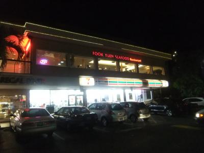 天気の良いハワイの下町で、道端に座って食べるのもまたおつなものです。- 旅行時期