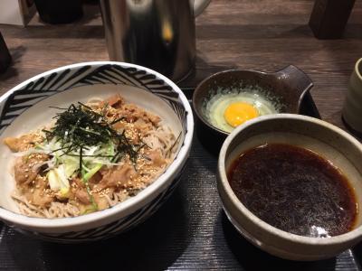 金沢駅内にある百番街あんと店の中にあって観光客にはご当地グルメを味わったりお土産を買ったり全てがここで済ませる便利な場所です。お店のイチオシ<牛肉そば>を注文。¥630。冷たいお蕎麦を温かいつけ汁につけて食べる。つけ汁に生卵を入れて食べるとまろや味に。