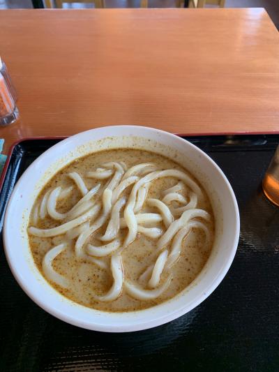 名物のカレーうどんの中サイズを食べてみた。(¥450)セルフのうどん店。カレーうどんだが、クリーム色で独特の味。全然辛くなく好き嫌いがあるかも。私はイマイチと感じた。岡山名物のぶたかば重もあった。次回行ったらぶたかば重を食べるかな。