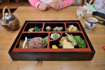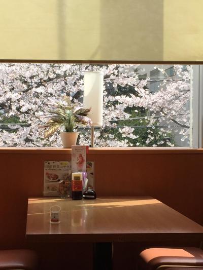 窓いっぱいの桜の花を見ながらのランチは、今だけのお楽しみ