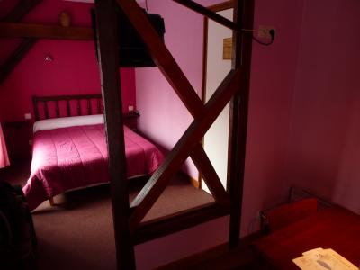 外観は木組みの2階建て建物で、外観も部屋も中世の雰囲気があります。宿泊した部屋はレストランの2階でした。階段や廊下はやや狭く、歩くたびにギシギシと音がしてました。フロントの女将さんは、街の説明をしてくれる等とても親切な方。でした。- 旅行時期