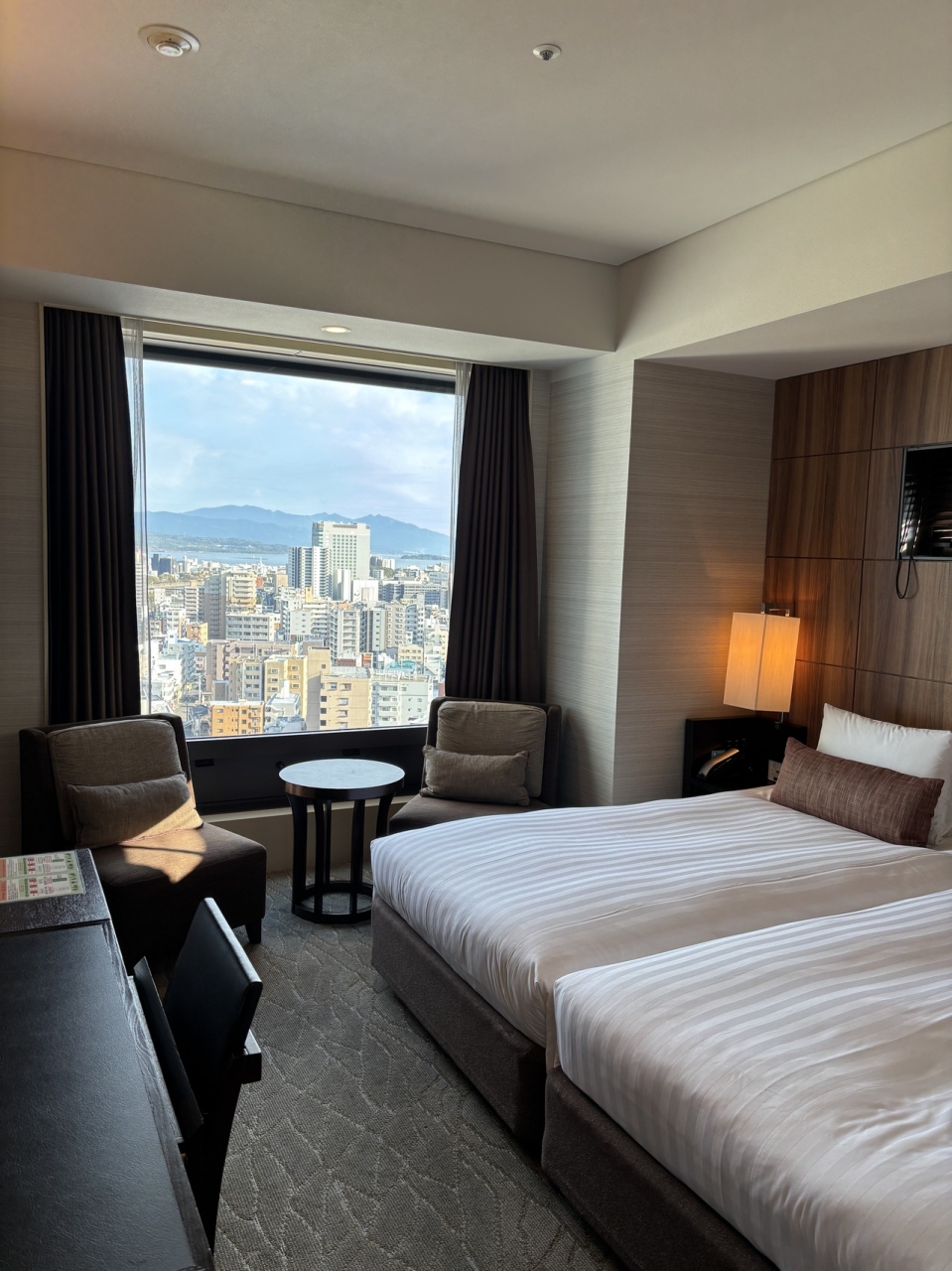 泊まる部屋の向きによって見える景色は違うけれど、海と山が見えたら神戸って感じますよね。