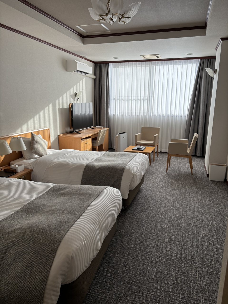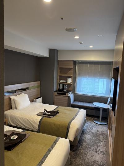 部屋もめちゃくちゃ広いわけでは無いですが、スーツケース2つ広げても十分な広さがありました。