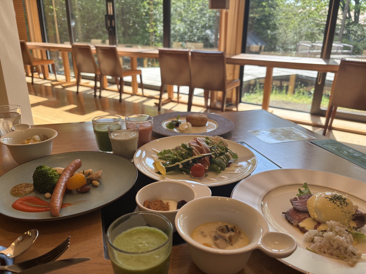 ラウンジも2箇所あってビールやスパークリングワインも飲めたり、森のテラス&カフェではみたらし団子を自分で焼いていただけたり、大人も子ども楽しめるホテルです。