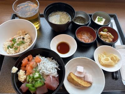 海鮮もあったのでトロロをかけて朝から海鮮丼にしていただきました。- 旅行時期