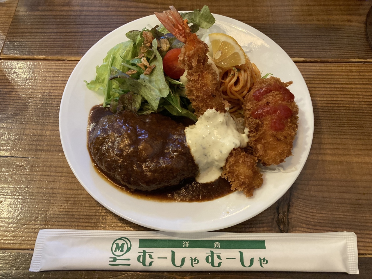 注文はAランチ エビフライ ハンバーグ カニクリームコロッケ
