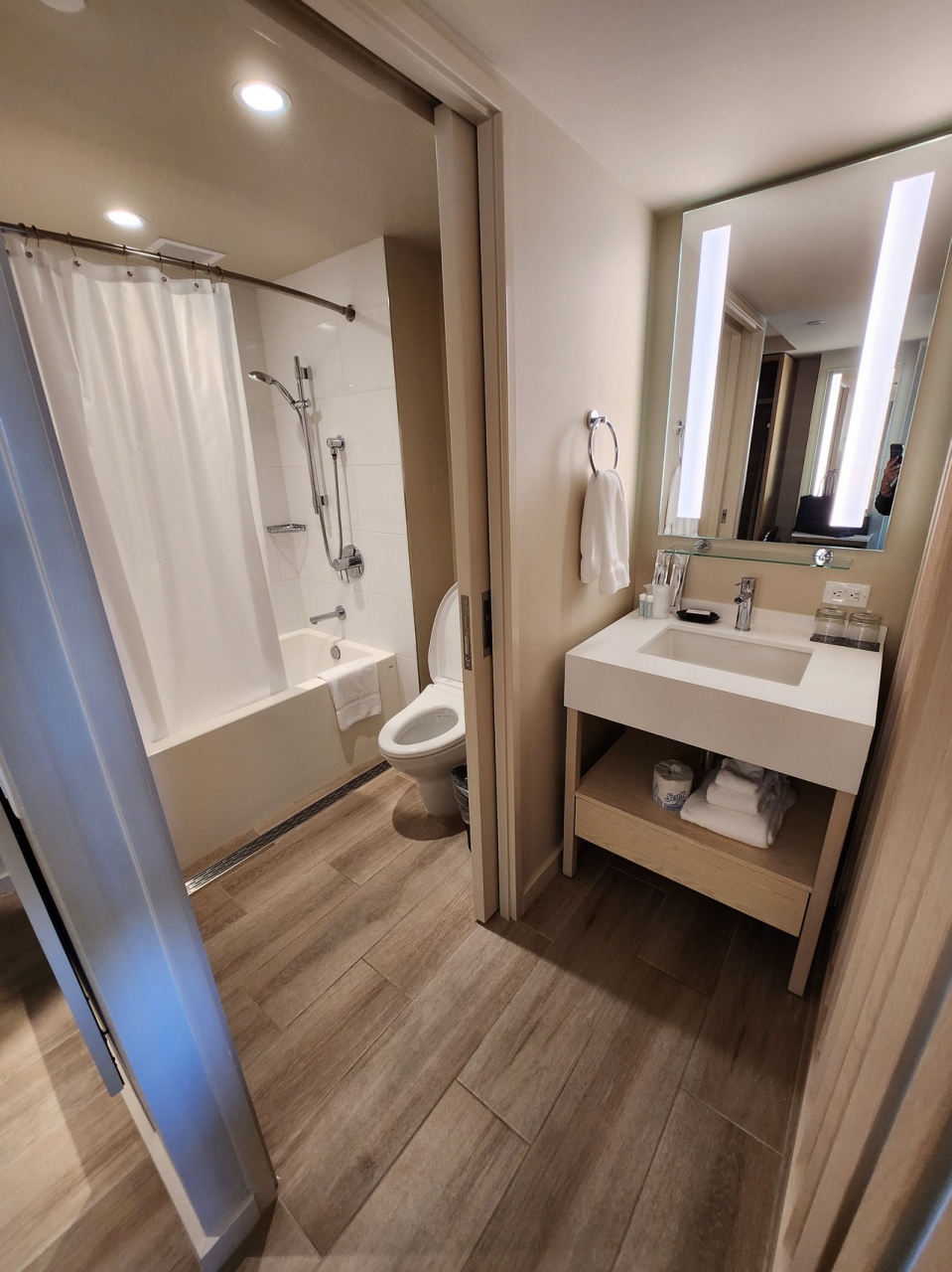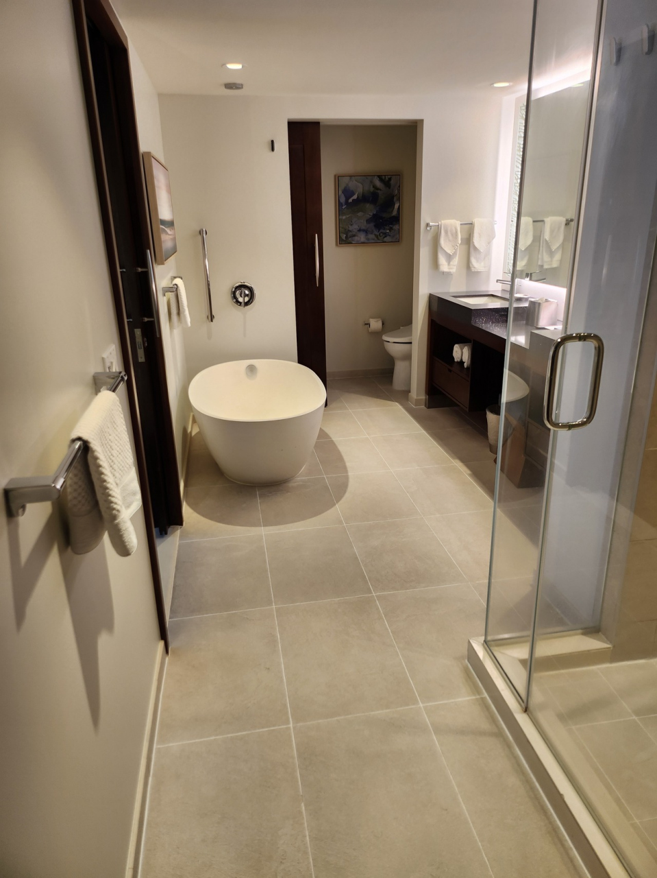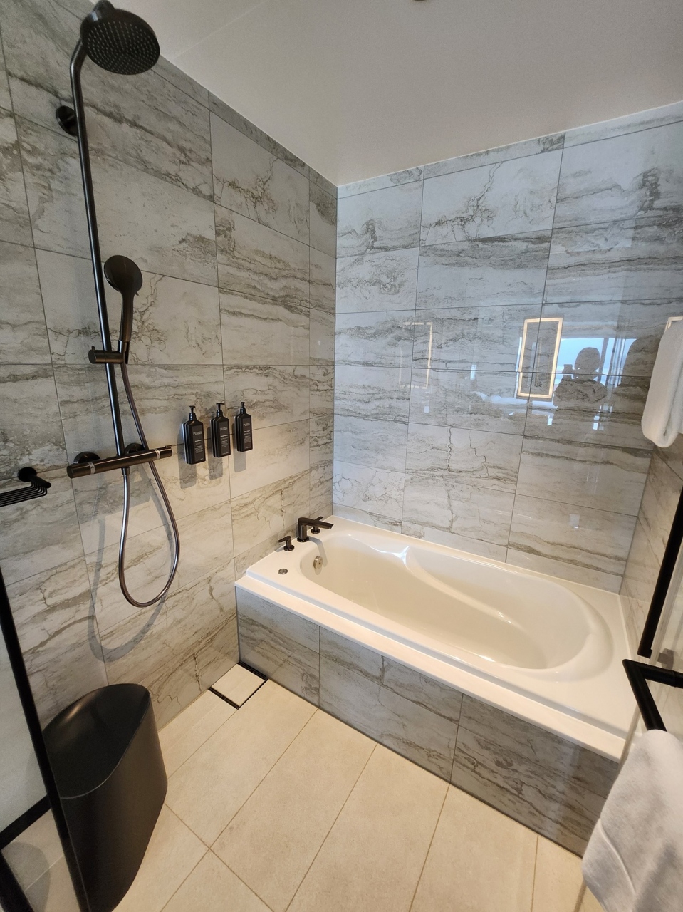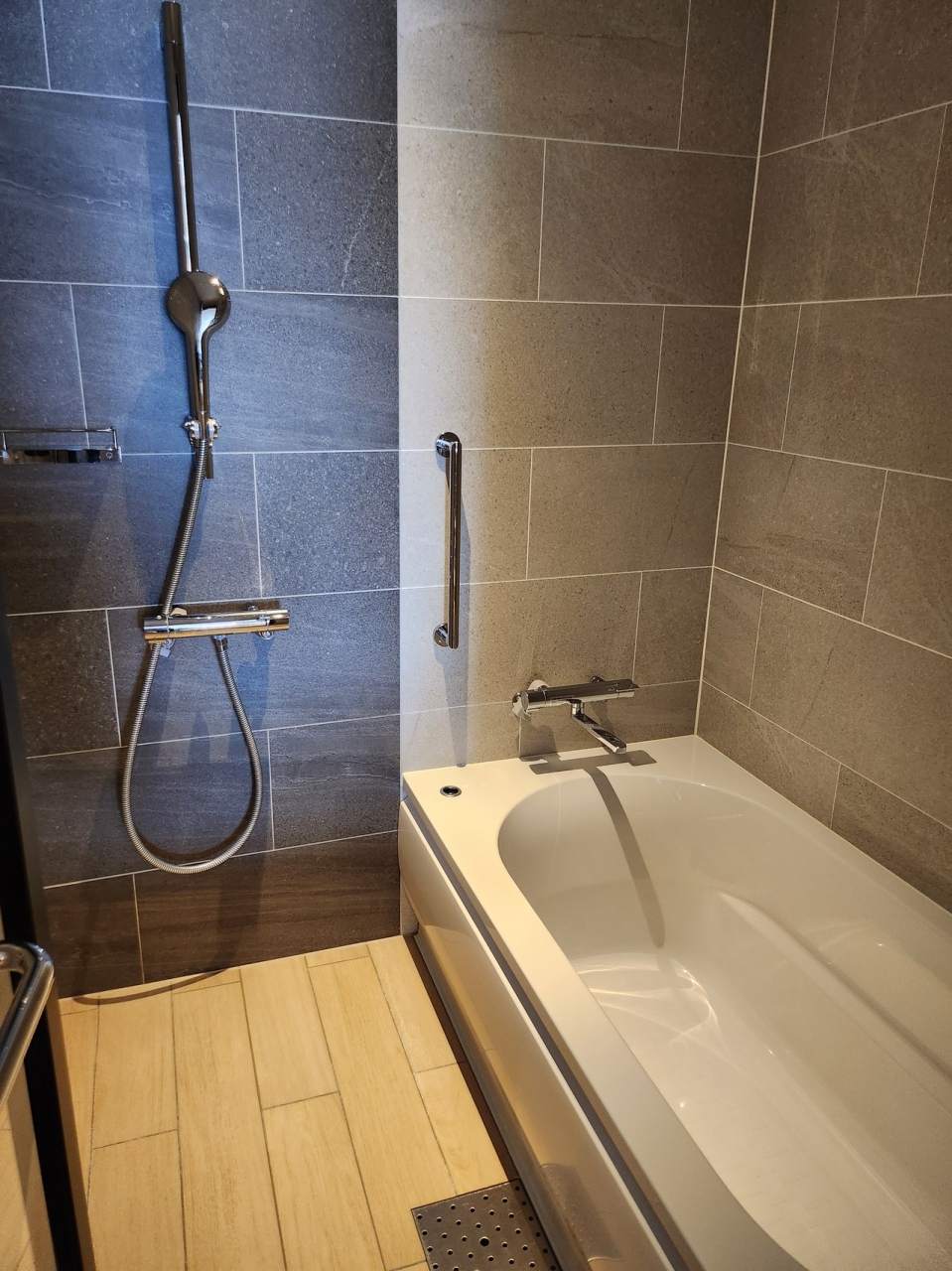 悪い点は、みなさまがあげている、ハーフバスタブであること、シャワーの水圧が、かなり弱いことです。- 旅行時期